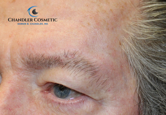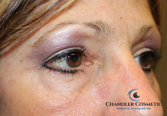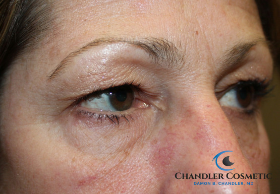 Blepharoplasty, or “Eye Lift” is the surgical removal of excess skin and fat from the eyelids. This revitalizing procedure takes years off the eyes and face and results in a more youthful and refreshed look. Eye Lift surgery can be performed on the upper eyelids, the lower eyelids, or all 4 eyelids for a maximum improvement. Often tightening of loose tissues is a complement to this procedure which restores and rejuvenates the entire eyelid and eyebrow area. In addition, Dr. Chandler’s modern, artful approach blends tissue elevation, volumizing fillers, fat repositioning and tissue contouring to give wonderful aesthetic results. Dr. Chandler performs Blepharoplasty with extremely fine sutures and in precise anatomic locations which results in virtually no scarring.